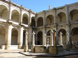 Los pasillos que rodean el jardín están decorados por una cenefa en gris y blanco en el cordón franciscano arriba y abajo y motivos de flores y hojas de parra en el centro.